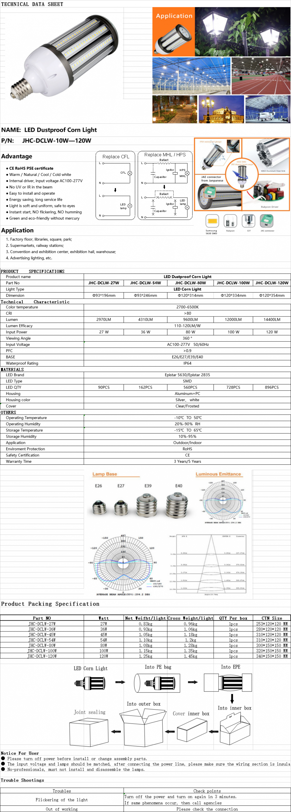 Part No.: JHC-DCLW-10W—120W