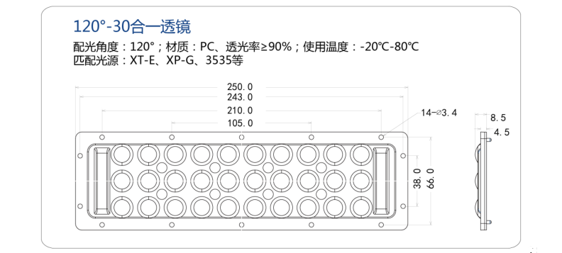 发光角度:60°90°120°偏光45°