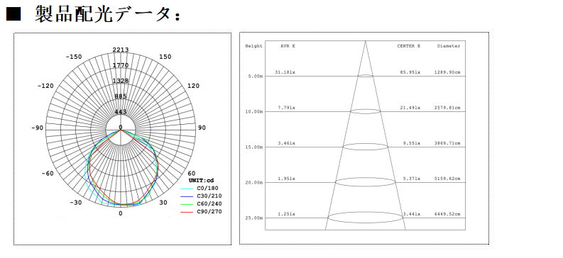発光角度:10° 20°40°60°偏光50°